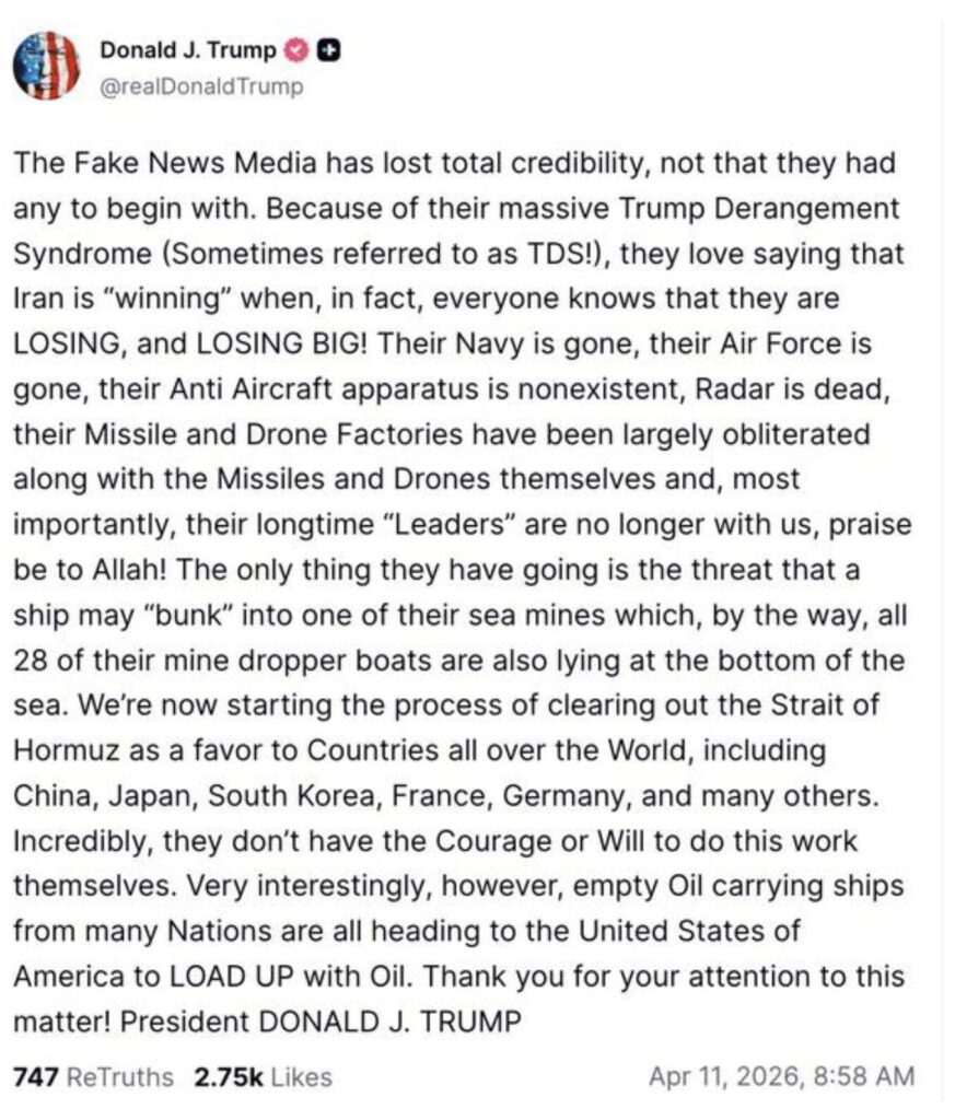 He accused the media of having a “Trump Derangement Syndrome,” claiming they wrongly say Iran is winning when, in reality, Iran is losing big. He said Iran’s navy, air force, anti-aircraft systems, radar, missiles, and drones have been destroyed, and its leaders are no longer alive.